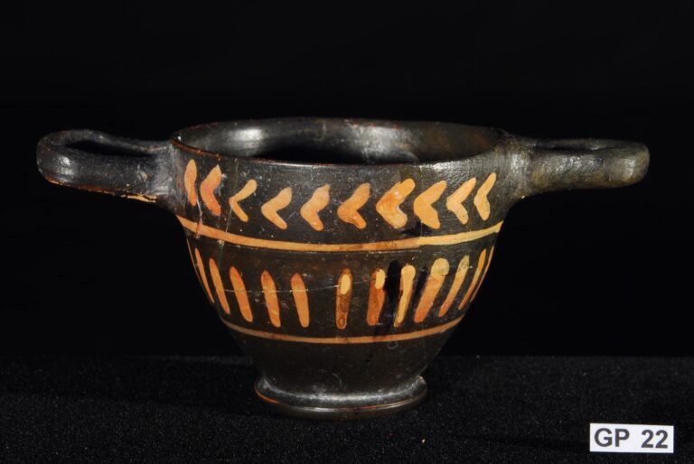 This skyphos has been a distinguished part of our museum’s collection, featured prominently in exhibitions dedicated to Greek and Italic pottery. These displays have effectively illustrated the extensive cross-cultural influences that have shaped ceramic styles throughout the Mediterranean region. By showcasing this piece, our exhibitions delve into the sophisticated ancient pottery techniques and explore the deep societal values embedded in these artistic traditions. The skyphos, as an exhibit-only item, enhances our understanding of the interconnectedness of ancient cultures and highlights the craftsmanship and aesthetic considerations of the time.