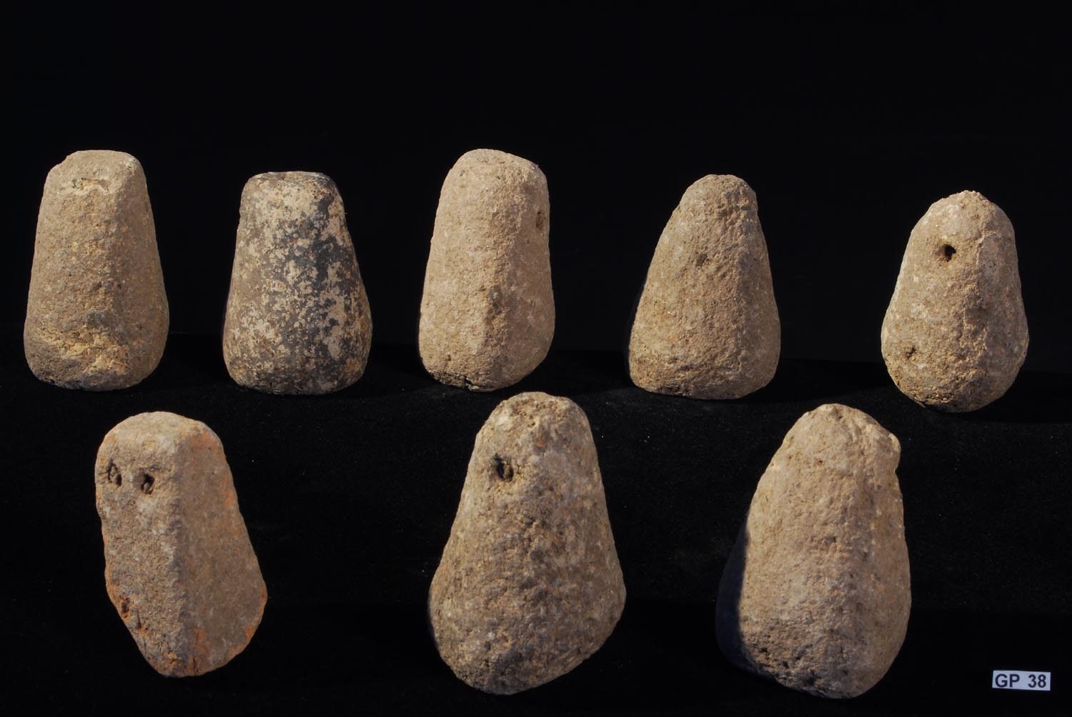 The presence of specific indentations and tool marks on each weight not only underscores their utilitarian role in textile production but also highlights the precision and care of their makers. These marks likely served to enhance grip and perhaps add to the visual appeal, a testament to the blend of functionality and artistry in ancient craftsmanship. The consistency in their design suggests a profound understanding of textile technology, aimed at achieving optimal tension in the weaving looms—an essential for producing high-quality fabrics.