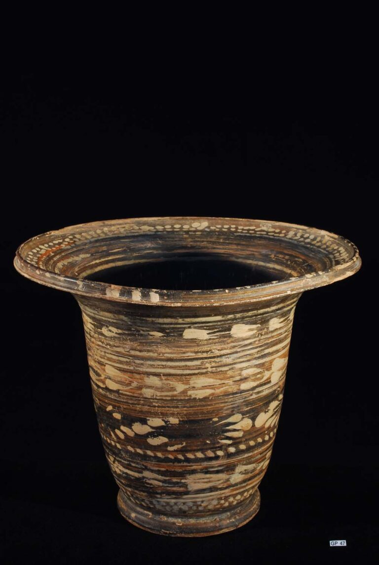 Furthermore, the presence of these motifs on a utilitarian object like a kalathos illustrates the seamless integration of aesthetic beauty and functionality, highlighting a society where art infused everyday life. This practice speaks to a cultural ethos where the beautification of utilitarian objects went hand in hand with their use in both public and private spheres, thereby enriching our understanding of how the ancient Messapians viewed the world around them. Through such artifacts, we gain a deeper appreciation of their artistic expression, as well as insights into the religious and social practices that shaped their community interactions and spiritual beliefs.